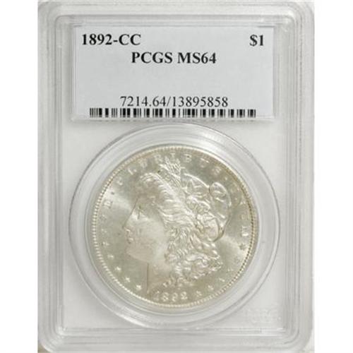 <B>1892-CC $1 MS64 PCGS.</B></I> A generally well produced issue from near the end of the CC-mint era, the 1892-CC enjoys perennial popularity. The present example appears high-end for the assigned grade, with brilliant, lustrous silver-white surfaces that display relatively few abrasions and generous eye appeal.<BR><BR><B>Coin Engraver:</B> George T. Morgan<BR><BR><b>Shipping:</b> Coins & Currency (<a target="_blank" href="http://www.heritageauctions.com/common/shipping.php">view shipping information</a>\)
