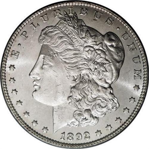 <B>1892-CC $1 MS64 Prooflike PCGS.</B></I> A beautiful Carson City example that exhibits impressive contrast between the motifs and the mirrored prooflike fields. Sharply struck design elements include the hair over Liberty's ear and the eagle's feathers. Whispers of sandy color are noted on both sides while a few luster grazes and contact marks on Liberty's portrait prevent a Gem grade. Population: 74 in 64, 10 finer (11/07).<BR><BR><B>Coin Engraver:</B> George T. Morgan<BR><BR><b>Shipping:</b> Coins & Currency (<a target="_blank" href="http://www.heritageauctions.com/common/shipping.php">view shipping information</a>)