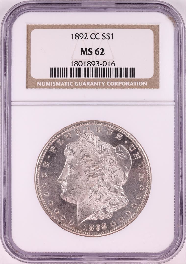 One 1892-CC $1 Morgan Silver Dollar Coin NGC MS62. NGC Certified.