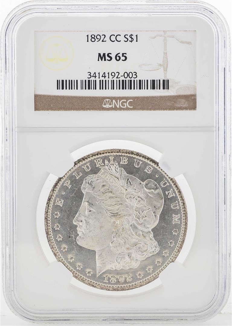 One 1892-CC $1 Morgan Silver Dollar Coin NGC MS65. 1892-CC NGC MS65 a rarely seen gem from this very elusive date in the popular Morgan dollar series. NGC Certified.