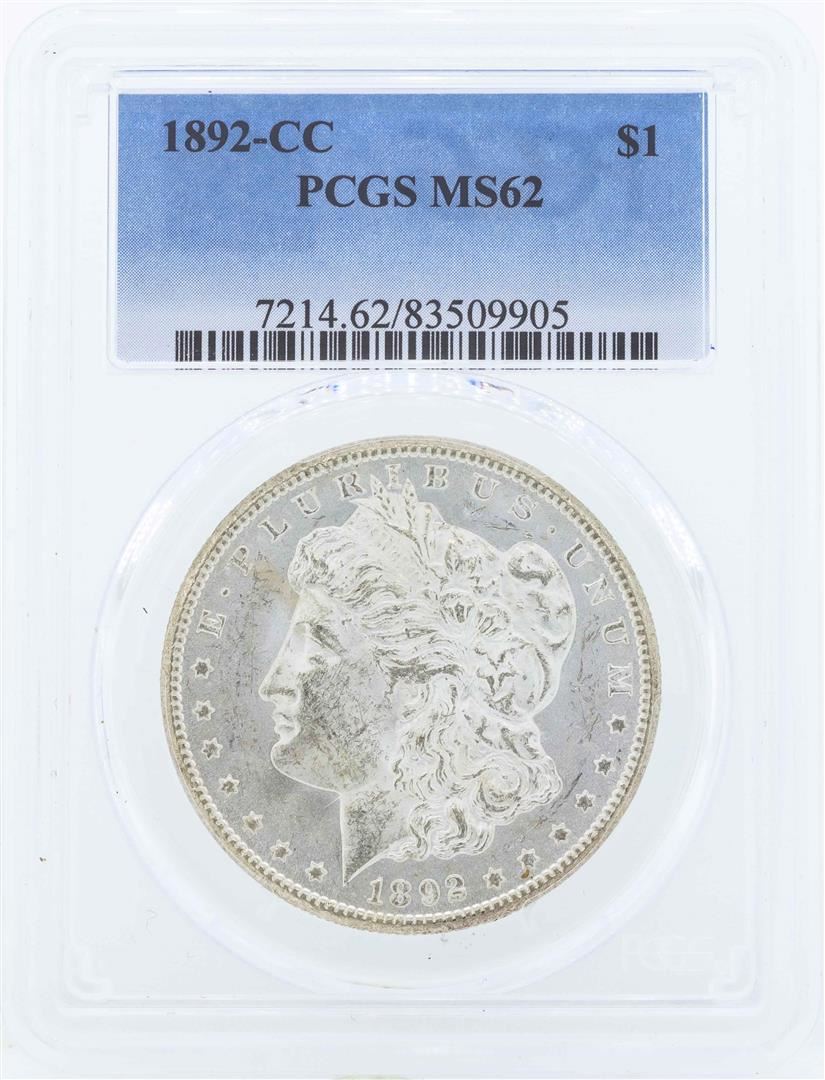 One 1892-CC $1 Morgan Silver Dollar Coin PCGS MS62. PCGS Graded.