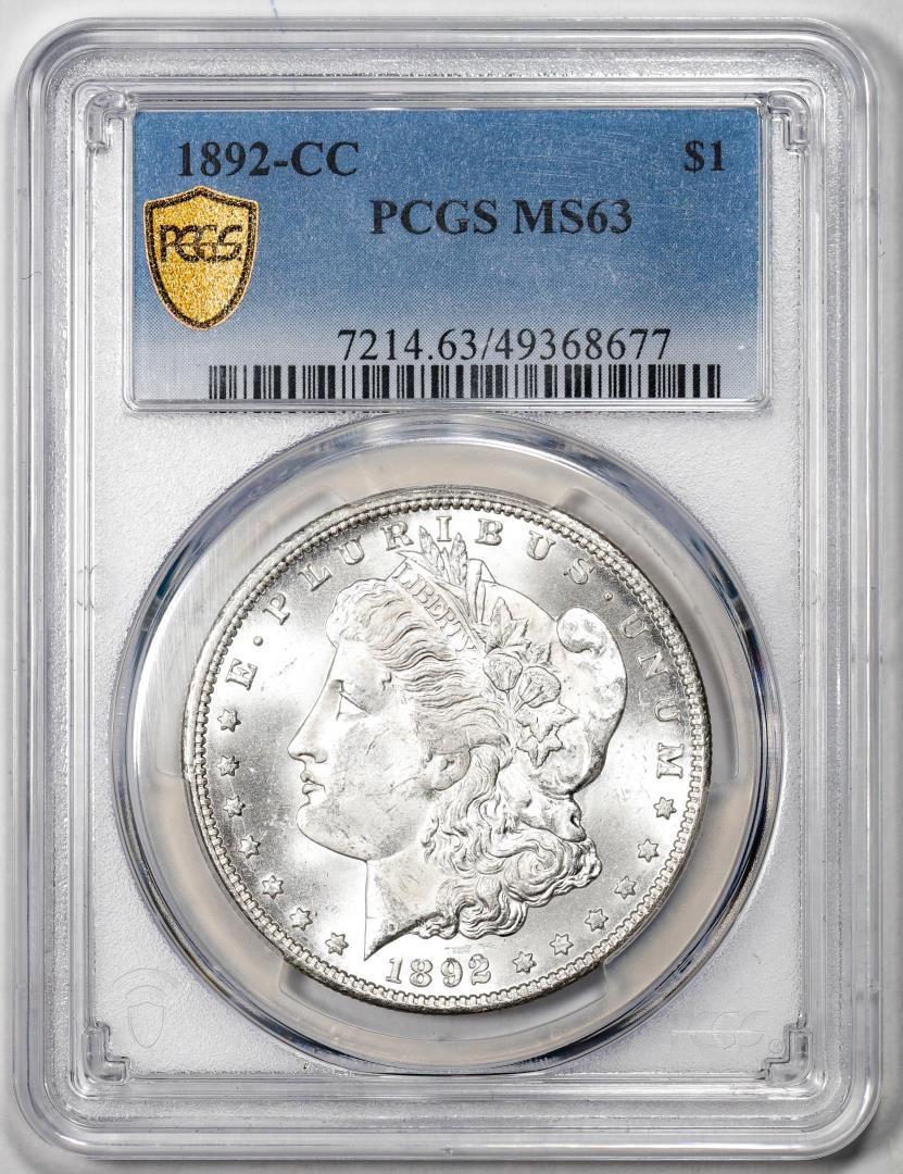 One 1892-CC $1 Morgan Silver Dollar Coin PCGS MS63. PCGS Graded.
