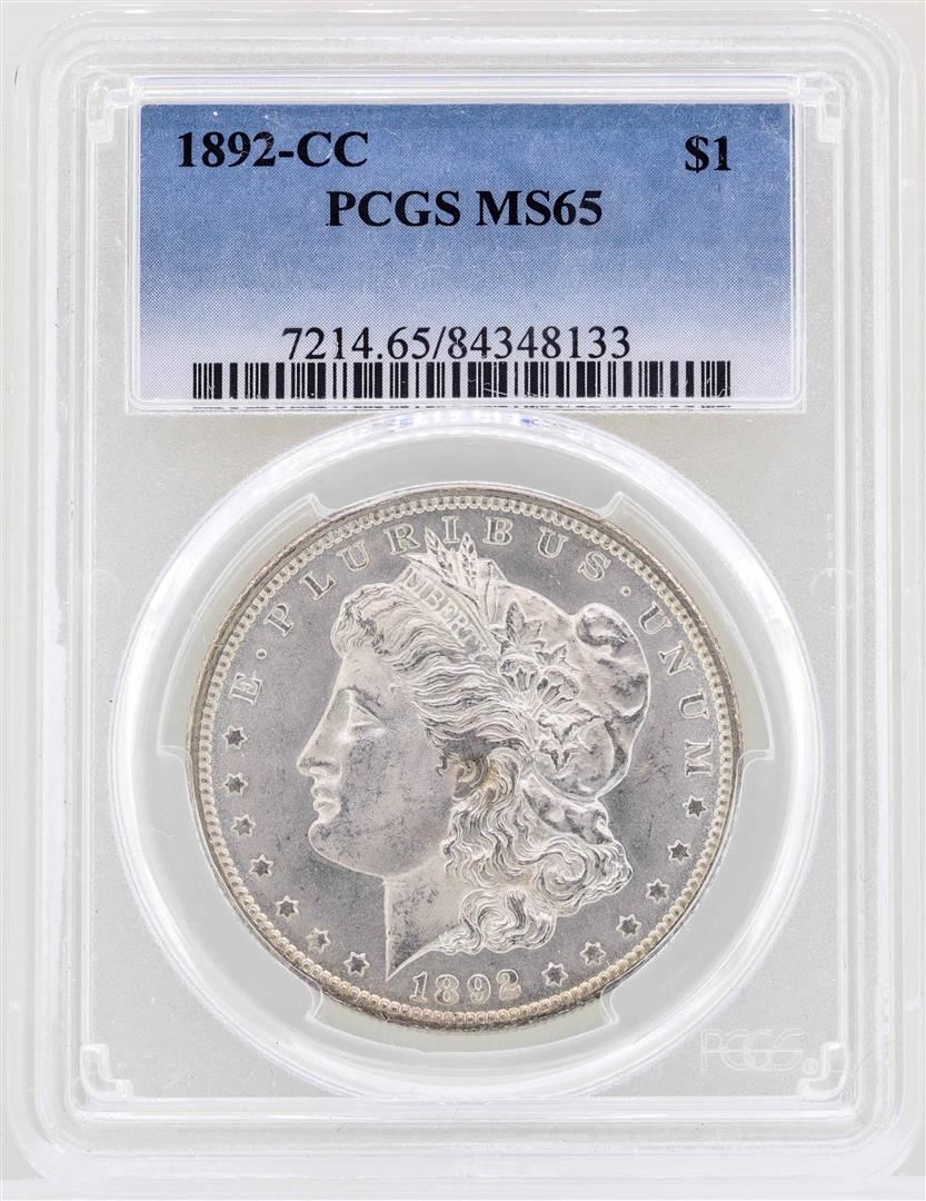 One 1892-CC $1 Morgan Silver Dollar Coin PCGS MS65. PCGS Graded.