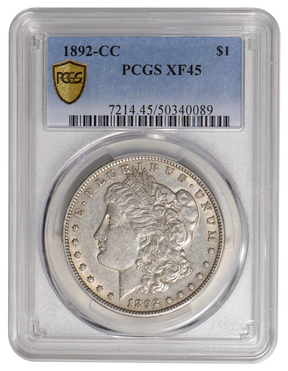 One 1892-CC $1 Morgan Silver Dollar Coin PCGS XF45.
