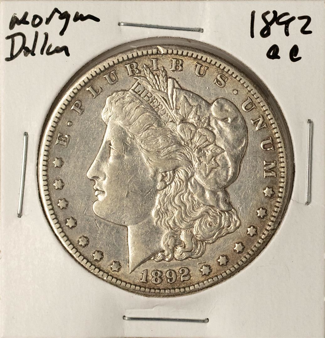 One 1892-CC $1 Morgan Silver Dollar Coin.