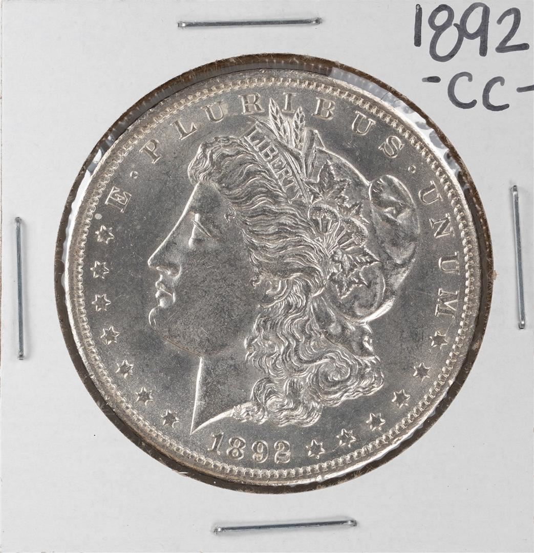 One 1892-CC $1 Morgan Silver Dollar Coin.