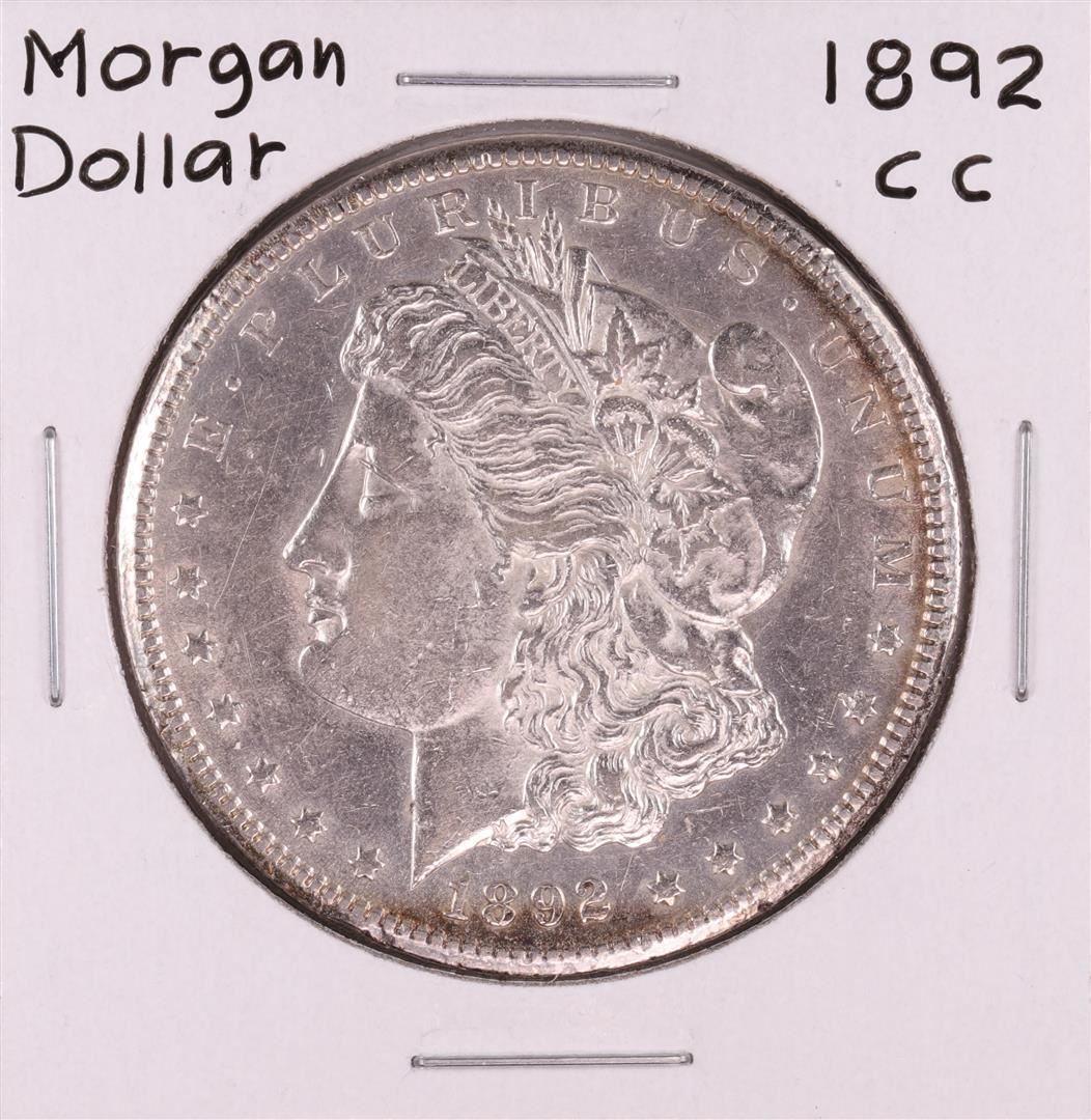 One 1892-CC $1 Morgan Silver Dollar Coin.