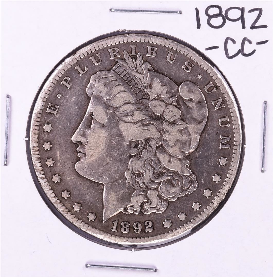 One 1892-CC $1 Morgan Silver Dollar Coin.