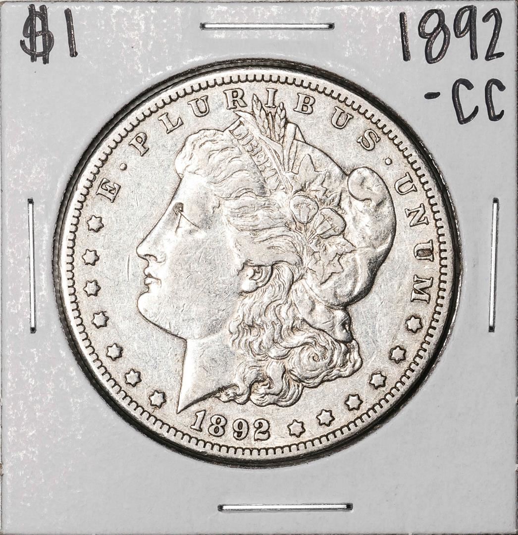 One 1892-CC $1 Morgan Silver Dollar Coin.