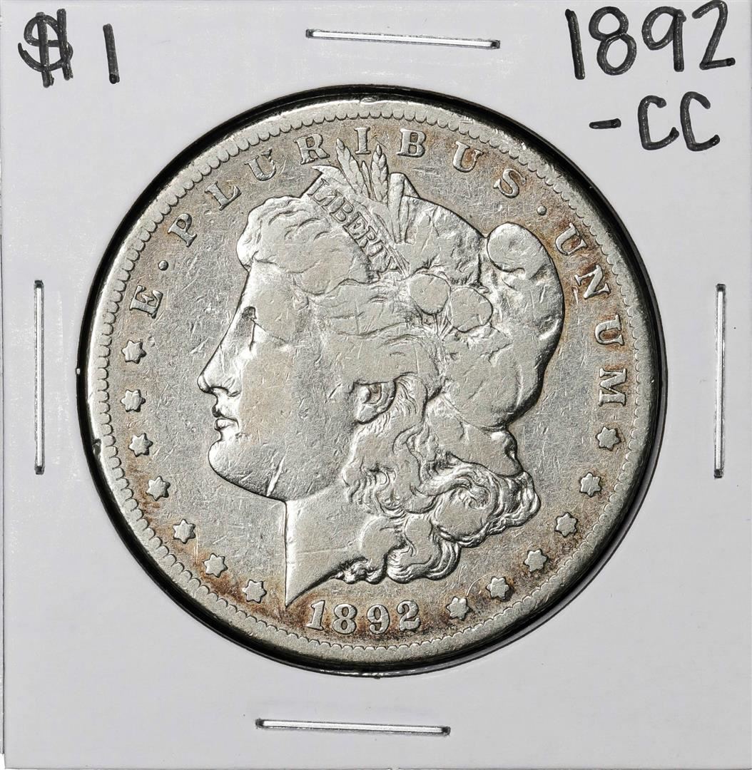 One 1892-CC $1 Morgan Silver Dollar Coin.