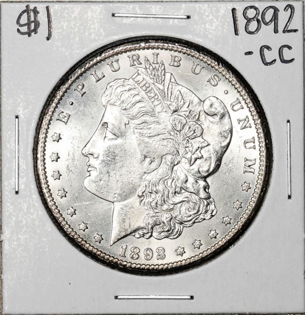 One 1892-CC $1 Morgan Silver Dollar Coin.