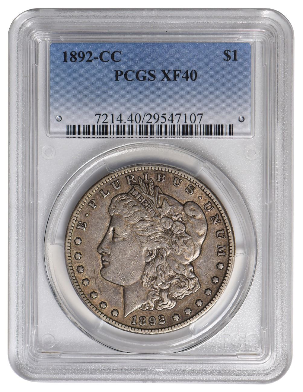 One 1892-CC $1 Morgan Silver Dollar PCGS XF40.