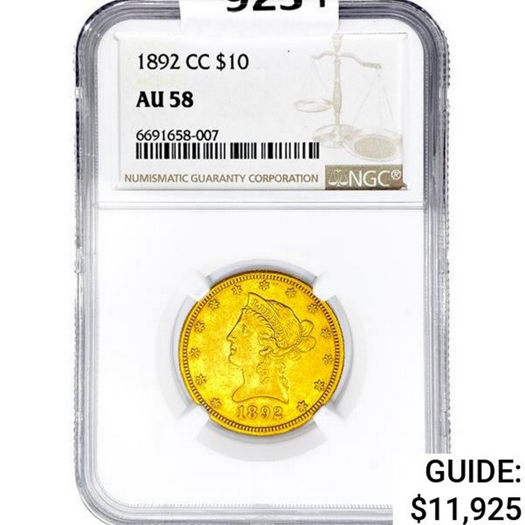 1892-CC $10 Gold Eagle NGC AU58