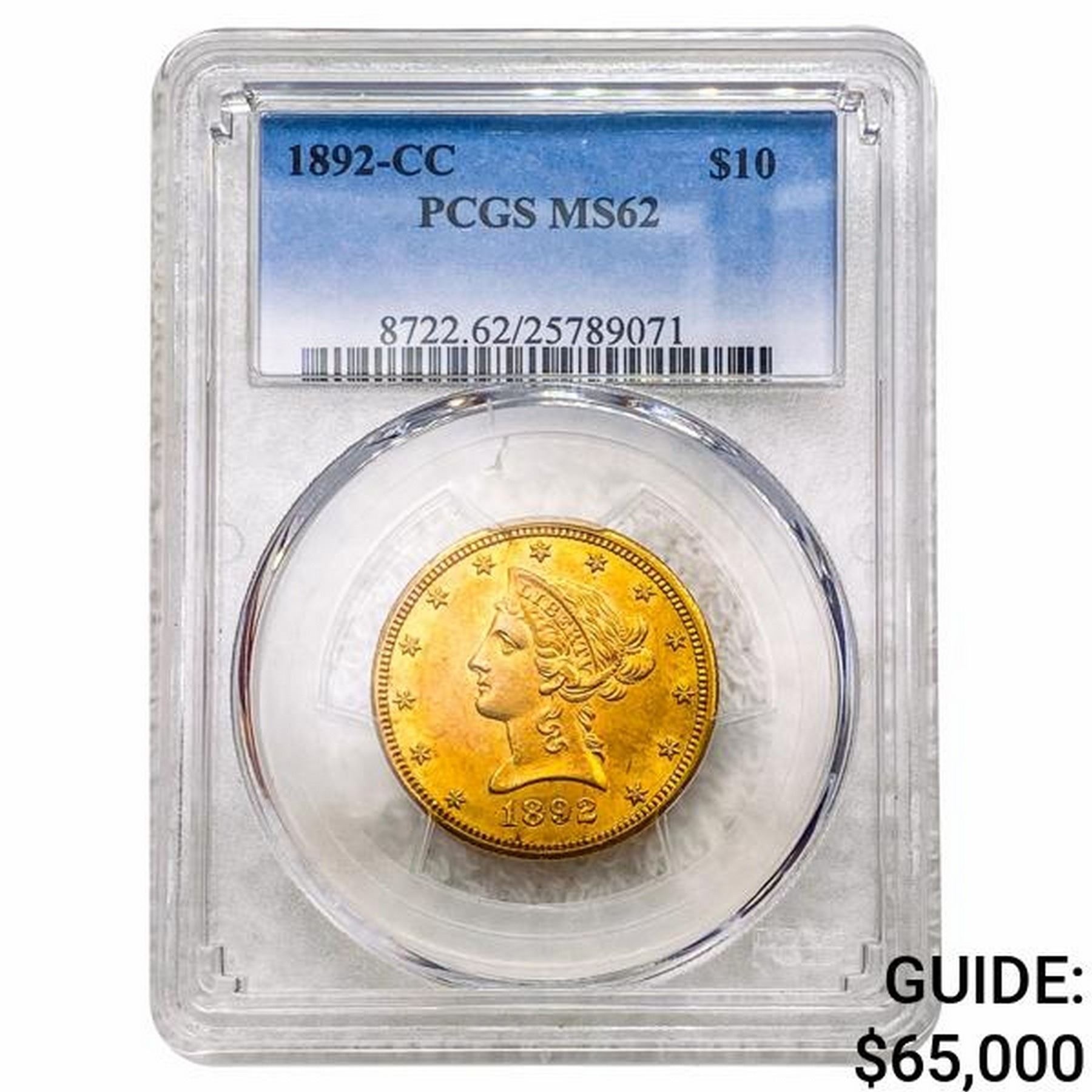 1892-CC $10 LH Eagle - Gold - PCGS MS62