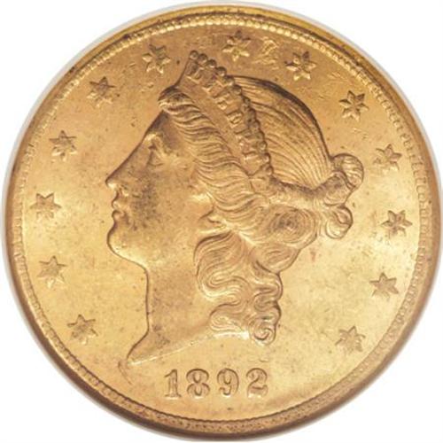<B>1892-CC $20 MS60 NGC.</B></I> Boldly struck on the central design elements, with some softness noted on the obverse and reverse dentils, as well as on the obverse peripheral stars. The fields are bright and somewhat reflective. Numerous small to moderate marks define the grade. A scarcer issue in Mint State which has become more available during the past decade, according to Jeff Garrett and Ron Guth. <BR><BR><b>Shipping:</b> Coins & Currency (<a target="_blank" href="http://www.heritageauctions.com/common/shipping.php">view shipping information</a>)
