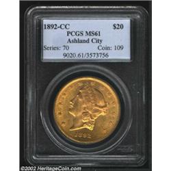 1892-CC $20 MS61 PCGS. Winter 1-A, the only known dies. Solidly graded at the BU level, this lovely.