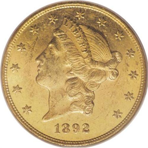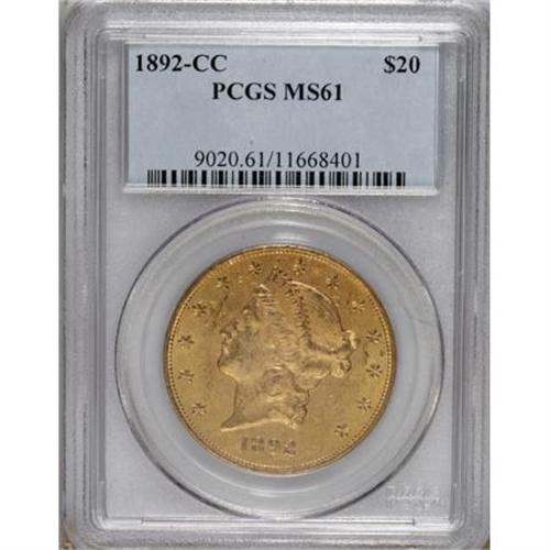 <B>1892-CC $20 MS61 PCGS.</B></I> Although not certified as a prooflike example by PCGS, both sides have fully reflective, mirrored fields. The mintage was 27,265 coins, and at one time this date was considered a rarity, although many examples have been brought back from overseas holdings. This example has faint green and pink overtones with medium yellow-gold color. The surfaces are lightly abraded, yet still quite attractive. Population: 40 in 61, 43 finer (4/07).<BR><BR><b>Shipping:</b> Coins & Currency (<a target="_blank" href="http://www.heritageauctions.com/common/shipping.php">view shipping information</a>)