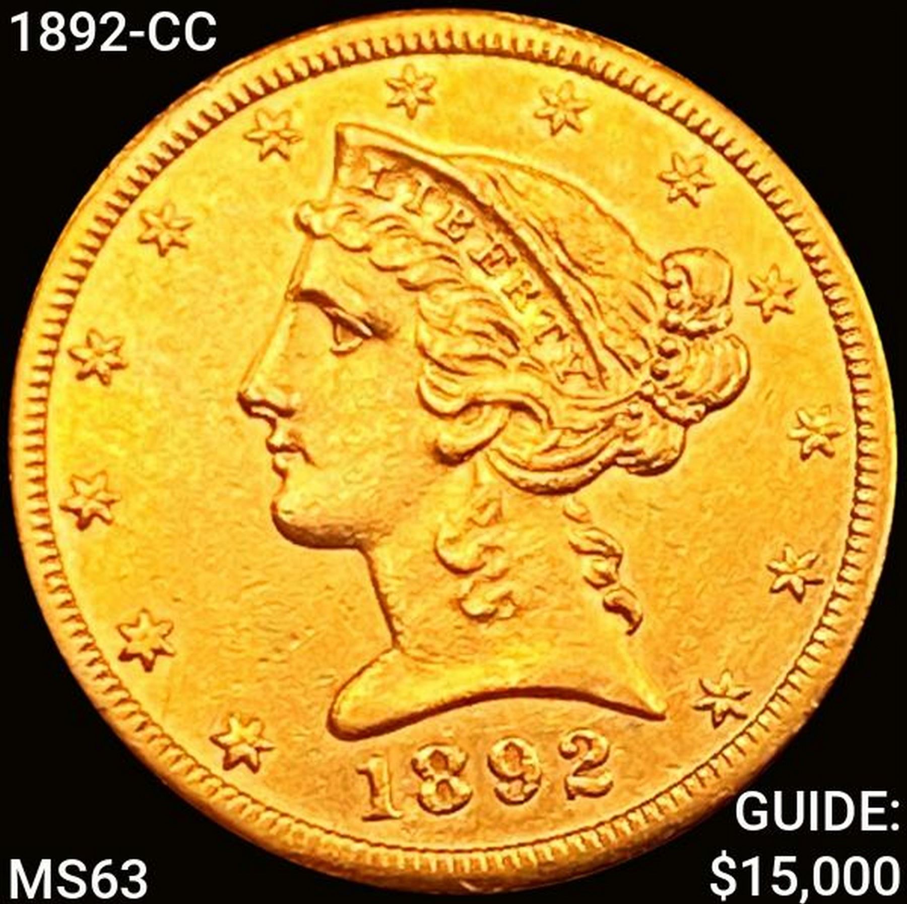 1892-CC $5 Gold Half Eagle CHOICE BU