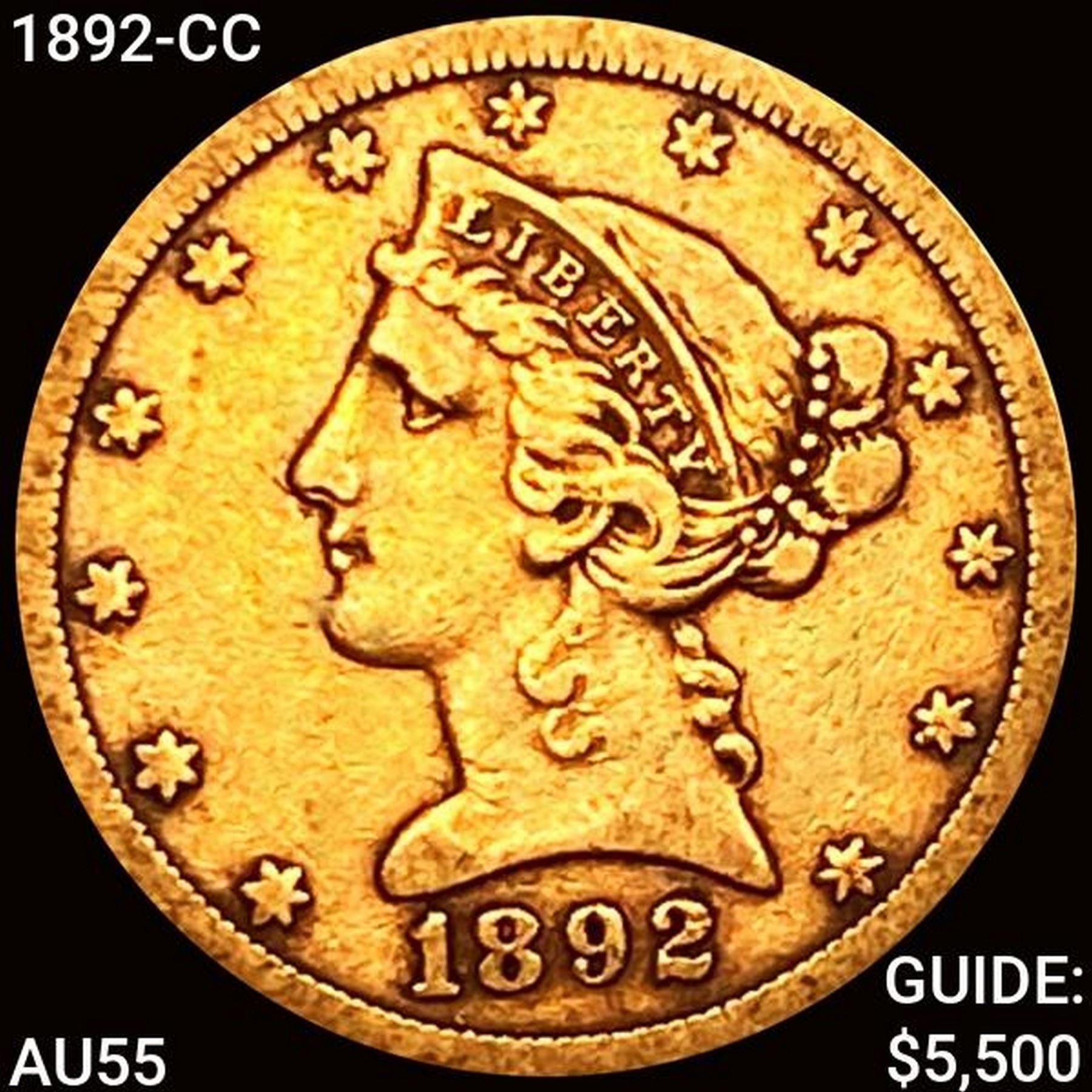 1892-CC $5 Gold Half Eagle CLOSELY UNCIRCULATED