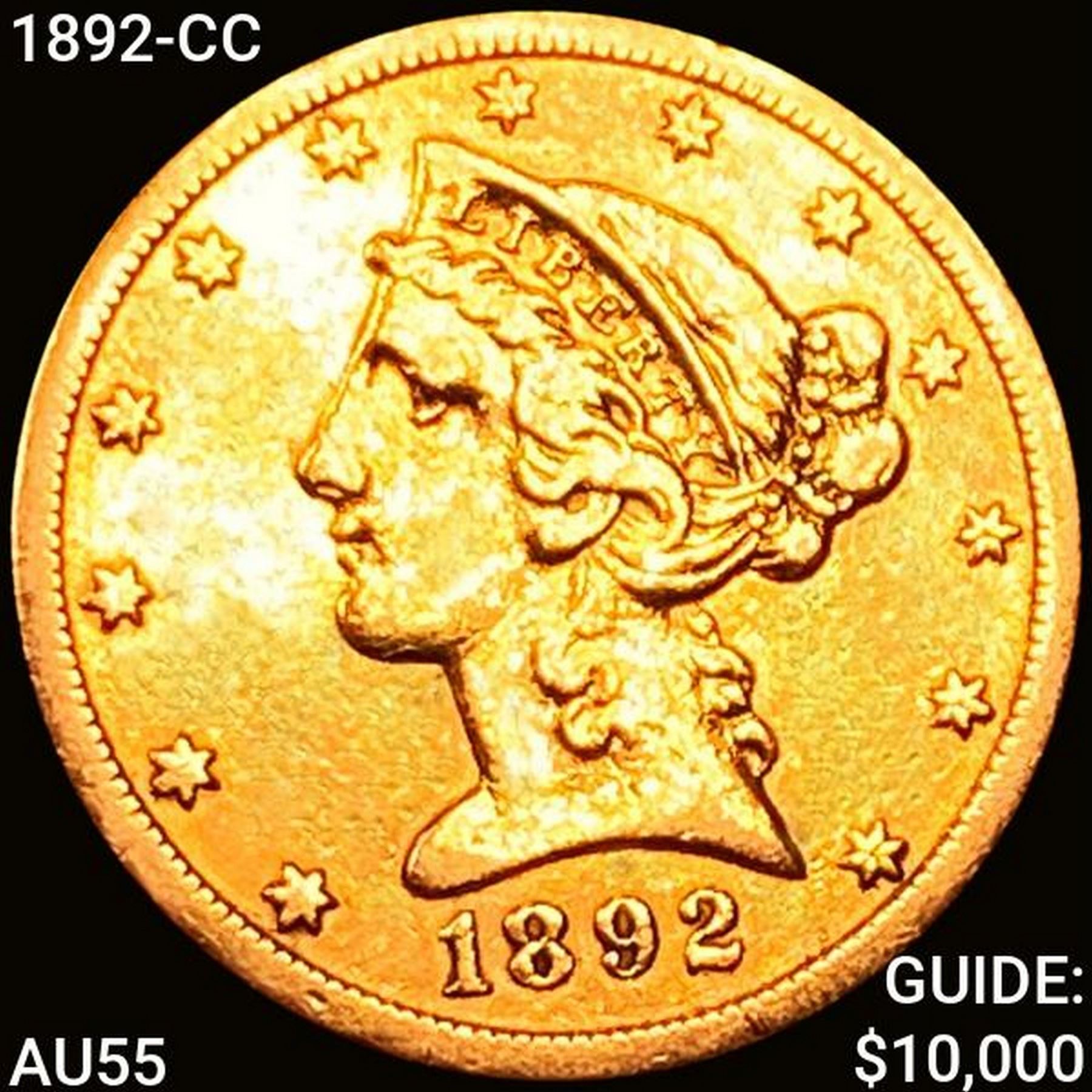 1892-CC $5 Gold Half Eagle CLOSELY UNCIRCULATED