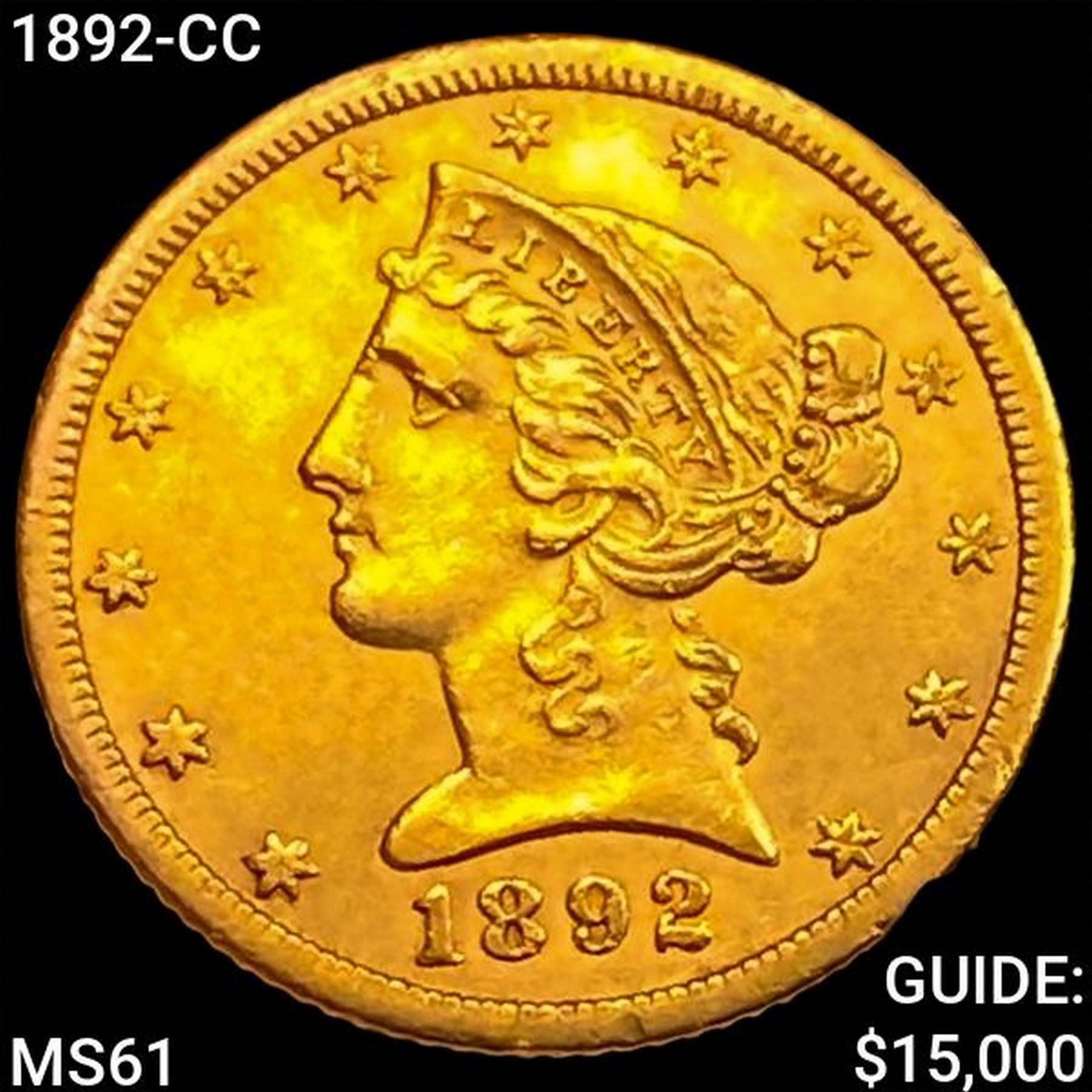 1892-CC $5 Gold Half Eagle UNCIRCULATED