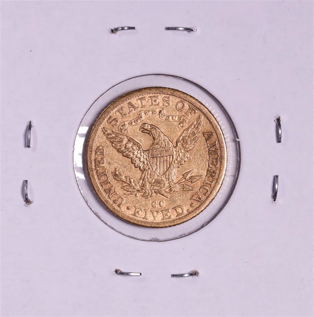 One 1892-CC $5 Liberty Head Half Eagle Gold Coin.