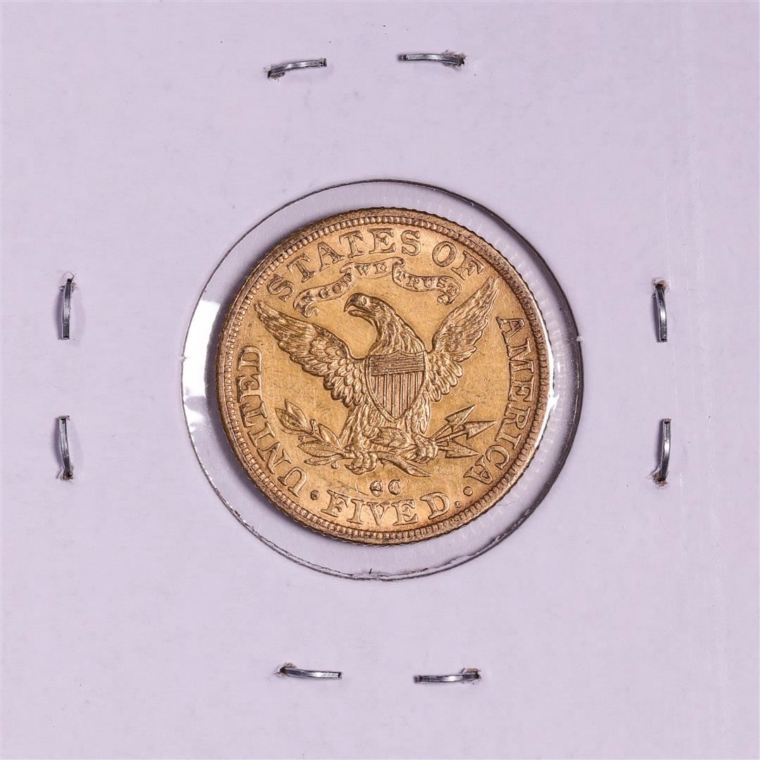 One 1892-CC $5 Liberty Head Half Eagle Gold Coin.