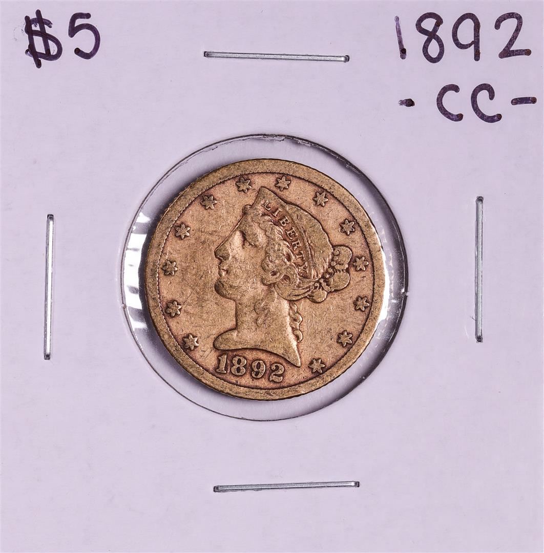 One 1892-CC $5 Liberty Head Half Eagle Gold Coin.