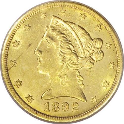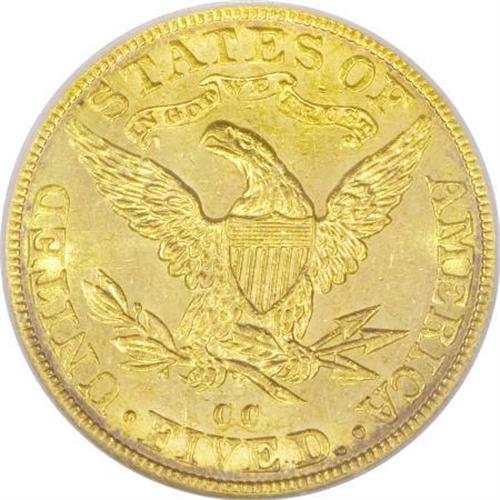 <B>1892-CC $5 MS63 ICG.</B></I> This is a splendid example with bright and flashy yellow-gold surfaces that are intensely lustrous. Some light hairlines in the fields are noted, but there are no individually mentionable marks. The 1892-CC is the scarcest Carson City half eagle from the 1890s and it is a significant condition rarity.<BR><BR><B>Coin Engraver:</B> Christian Gobrecht<BR><BR><b>Shipping:</b> Coins & Currency (<a target="_blank" href="http://www.heritageauctions.com/common/shipping.php">view shipping information</a>)
