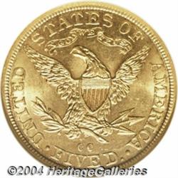 <table><tr><td><table><tr><td>1892-CC $5 MS63 NGC. Variety 1-A. Die State II. This particular die state is characterized by the bottom of the scroll below WE being partially polished away but the mintmark is normal. Although much more common than many of the earlier CC-mint issues in this series, the 1892-CC (82,968 pieces produced) is the scarcest Half Eagle produced by the Carson City Mint in the 1890s, and in Select or better grades it is very scarce. This satiny representative handily qualifies for its assigned grade, being satiny and boldly struck, with just a few wispy abrasions in the fields. Population: 4 in 63, 3 finer (4/04). <BR><BR><B>Important notice:</B> Heritage usually auctions material at the rate of 200-250 lots per hour. On some occasions eBay Live bid software or the Internet may not be able to keep up with the pace of the auction. We recommend placing a realistic absentee bid now as insurance to avoid disappointment. Occasionally the auctioneer may eliminate or reject an eBay Live bid, and the auctioneer may also reopen a lot after the close of the eBay live bidding (usually because we missed an audience bid), and may reject your bid even if it shows you as the winning bidder. By bidding via eBay Live, you agree that Heritage may award the lot to another bidder at its sole discretion under the circumstances described above or any other reasonable circumstances. Since eBay bids are not shown to us until we open the lot on the floor, we treat those bids just like floor bids. In most cases the floor responds before the eBay bid is presented to us, due to Internet lag time, so for consistency we have made it a policy that floor bids are always considered first over tie eBay live bids. Also please note that all Heritage lots purchased through eBay Live carry a 20% Buyer's Premium. Please make sure you read the Terms and Conditions before you bid. <BR><BR><B>IMPORTANT ANNOUNCEMENT ABOUT RESERVES:</B> Heritage now divulges all reserves on its web site 7 days before every auction. If you want to know whether the reserve on this lot has been met, and if not, what the reserve amount is, please visit this lot page on the HeritageCoin.com web site, or email: bid@HeritageGalleries.com </span></font></td></tr></table></td></tr></table>