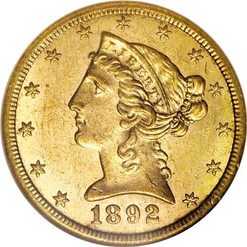 <B>1892-CC $5 MS63 Prooflike NGC.</B></I> Mint State examples of this date are scarce, and usually in the lower numerical grades when they are found. For example, MS63 is the finest that PCGS has ever graded, and NGC has only examined three coins in higher grades. This particular example is the only prooflike piece that NGC has graded in any numerical level. Both sides have fully reflective fields with sharp design details and splendid light yellow color.<BR><BR><b>Shipping:</b> Coins & Currency (<a target="_blank" href="http://www.heritageauctions.com/common/shipping.php">view shipping information</a>)