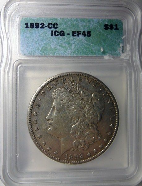 1892-CC MORGAN DOLLAR ICG XF-AU45 ORIGINAL!
