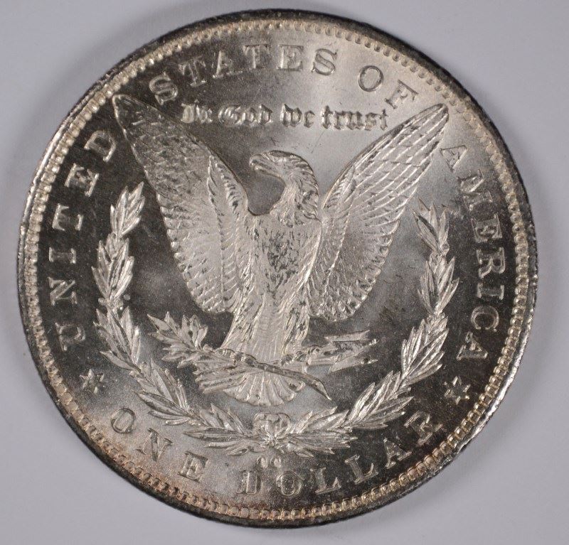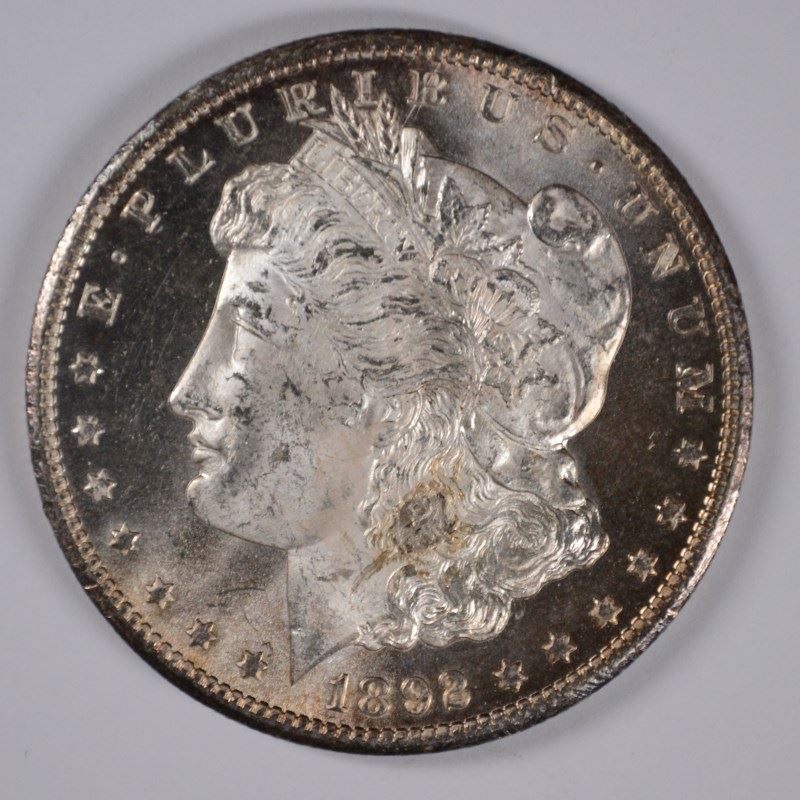1892-CC MORGAN DOLLAR, MS-64 SEMI-PL, ORIGINAL, RARE, SUPER FLASHY, MOSTLY WHITE