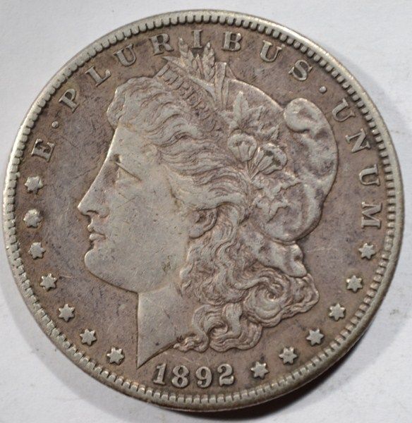 1892-CC MORGAN DOLLAR XF-AU, BREAST FEATHERS ON EAGLE! NICE! ORIGINAL!