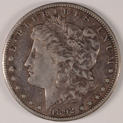 1892-CC MORGAN DOLLAR XF-AU, BREAST FEATHERS ON EAGLE! NICE! ORIGINAL!