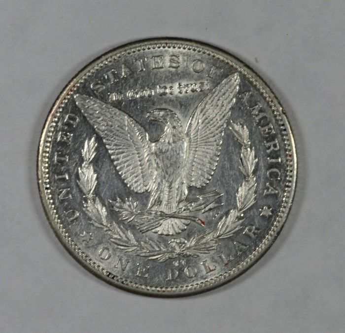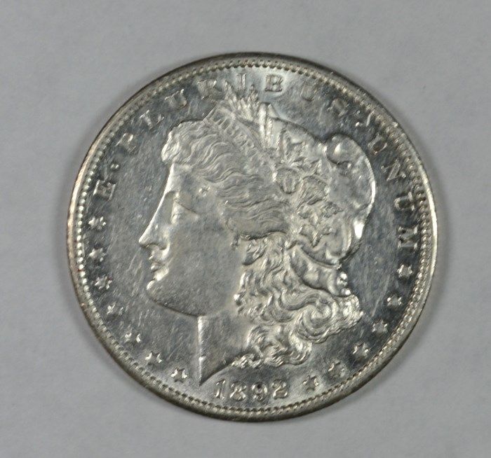 1892-CC MORGAN SILVER DOLLAR, AU-58 VERY CLOSE TO BU