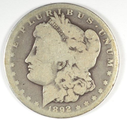 1892-CC MORGAN SILVER DOLLAR, GOOD, SEMI-KEY