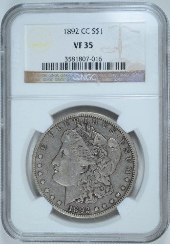 1892-CC MORGAN SILVER DOLLAR, NGC VF-35, THIS COIN IS XF-40 FOR SURE!