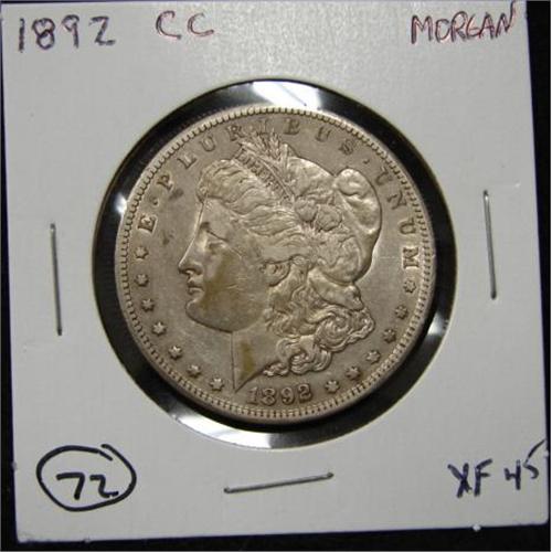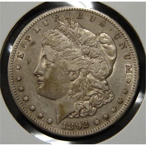 1892-CC MORGAN SILVER DOLLAR. XF 45.
