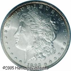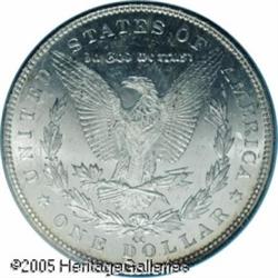 <B>1892-CC<img border='0' src='http://www.heritagecoins.com/images/star.gif' width=10 height=10>$1 MS64 Prooflike PCGS.</B></I> With moderate, yet pleasing cameo effects and few noticeable bagmarks, this is a premium quality representative of this conditionally scarce CC-mint issue. Mostly brilliant with a subtle ring of golden-russet patina about the outermost border areas. Lot:10391