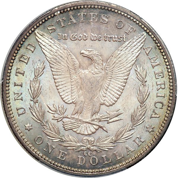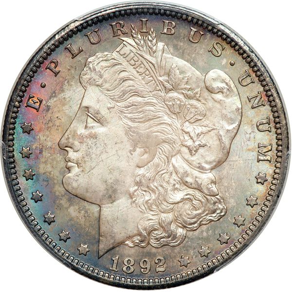 1892-CC Morgan Dollar. PCGS graded MS-64 PQ CAC Approved. Lovely blue toning. A great looking coin for this grade and sure to please even the most critical student of numismatics. Better date Carson City Mint dollar (PCGS # 7214) .