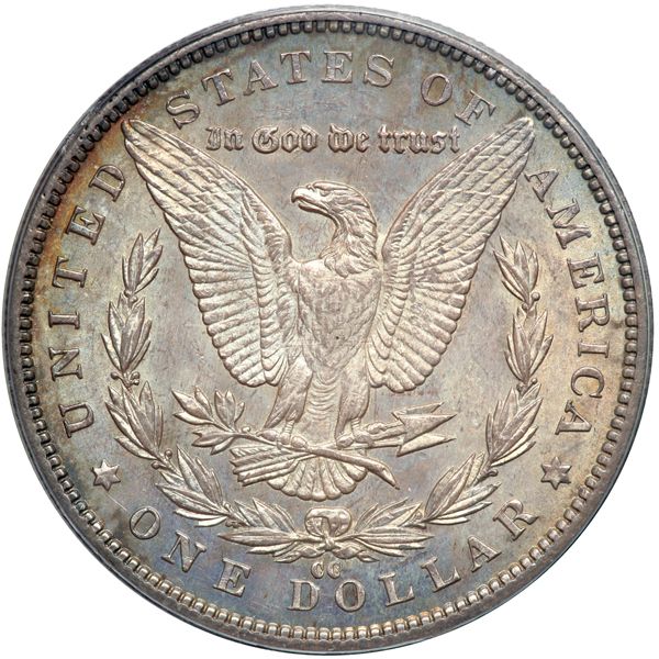 1892-CC Morgan Dollar. PCGS graded AU-58 PQ. Lovely golden toning. Well struck and near Mint State (PCGS # 7214) .