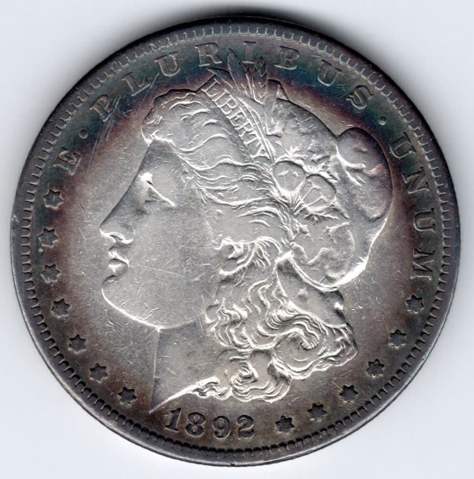 1892-CC Morgan dollar. Halo toning is rare! It's a nice coin!