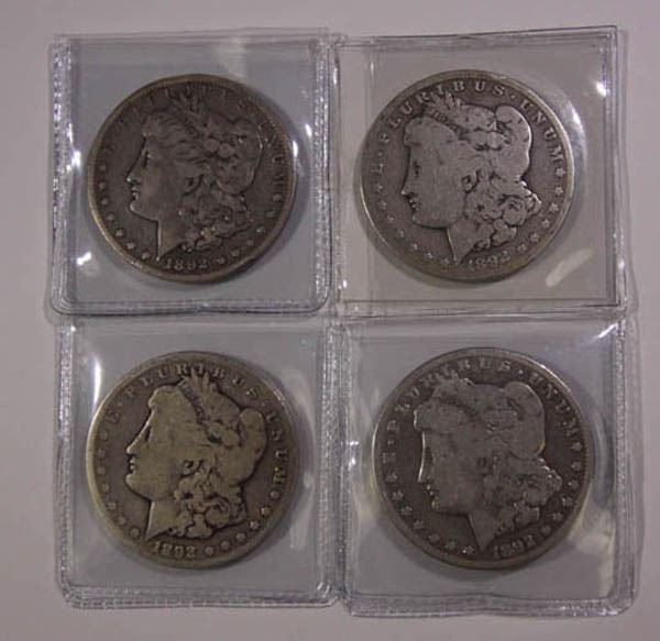 1892-CC Morgan Dollars. Good to Very Good. Four pieces.