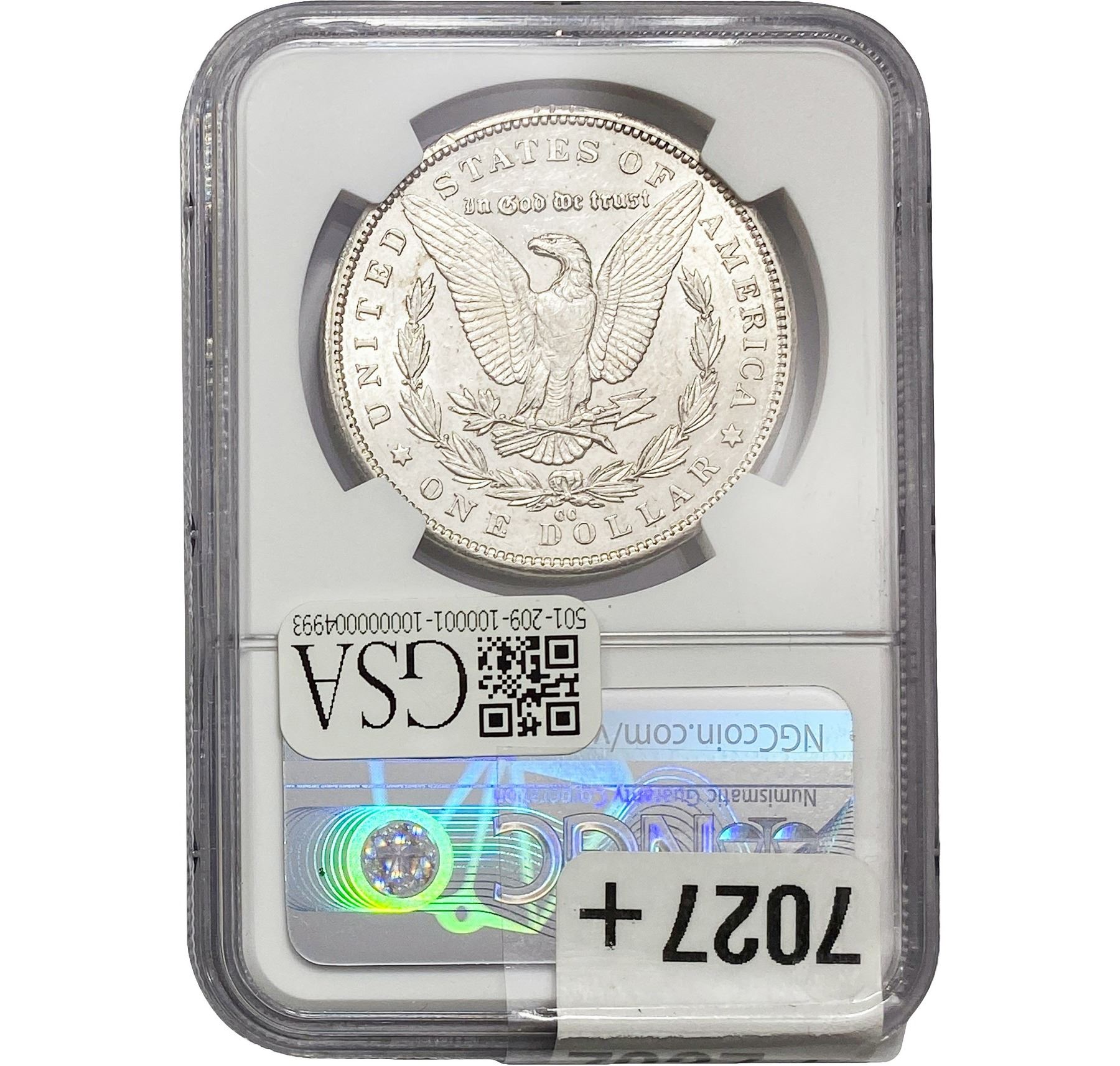 COINS AND CURRENCY LISTED IN GSA’S CATALOG AS GRADED AND ENCAPSULATED BY PCGS, NGC, ANACS, ICG, PCGS CURRENCY, PMG, PCGS BANKNOTE GRADING, CMC OR ANY OTHER THIRD-PARTY GRADING SERVICE ARE LIKEWISE SOLD “AS-IS” EXCEPT AS EXPRESSLY SET FORTH HEREIN. ALL THIRD-PARTY GRADING SERVICE GUARANTEES, INCLUDING AUTHENTICITY, ARE THE SOLE RESPONSIBILITY OF THE THIRD-PARTY GRADING SERVICE AND NOT WARRANTIES OR GUARANTEES OF GSA. BIDDERS SHOULD CONTACT THESE THIRD-PARTY GRADING SERVICES DIRECTLY WITH RESPECT TO ANY CLAIMS OR QUESTIONS THEY MAY HAVE CONCERNING THEIR GUARANTEES AND WARRANTIES. BIDDERS ACKNOWLEDGE AND AGREE THAT AUCTIONEER IS NOT BOUND BY OR LIABLE FOR ANY OPINION OR CERTIFICATION BY ANY THIRD-PARTY GRADING SERVICE. REMOVAL OF A PRODUCT FROM ITS PROTECTIVE CASING OR HOLDER OR ALTERATION OF ANY COIN HOLDER WAIVES ALL RIGHTS CONCERNING THE PRODUCT CONTAINED THEREIN.
