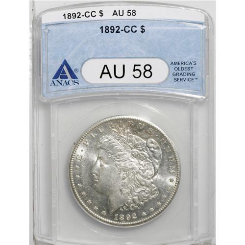 1892-CC S$1 AU58 ANACS. An attractive piece with trace