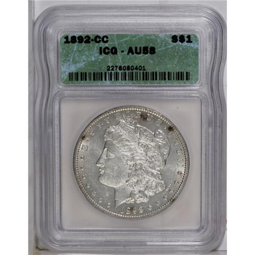 1892-CC S$1 AU58 ICG. This better date Carson City dol