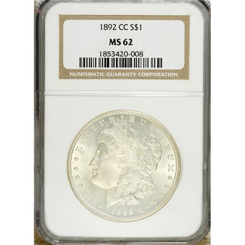 1892-CC S$1 MS62 NGC. Untoned surfaces reveal a frosty