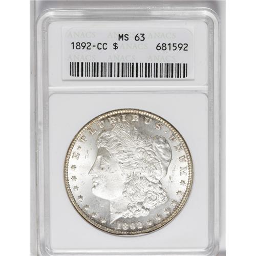 1892-CC S$1 MS63 ANACS. Select and nicely struck, this