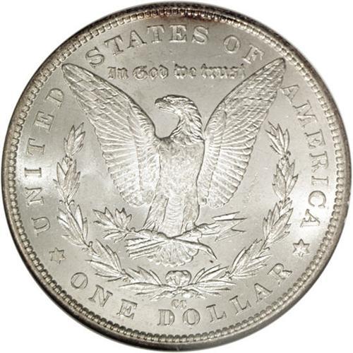 <B>1892-CC<img border='0' src='http://www.heritagecoins.com/images/star.gif' width=10 height=10>$1> MS63 NGC.</B></I> A sharply struck representative of this better Carson City issue. A dash of russet patina near 12 o'clock is noted on the reverse, but the lustrous surfaces are otherwise only faintly toned. A few unimportant grazes on the cheek and left obverse field decide the grade. Liberty's profile is lightly die doubled.